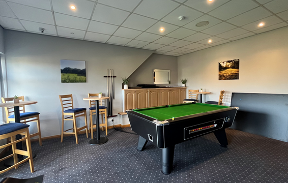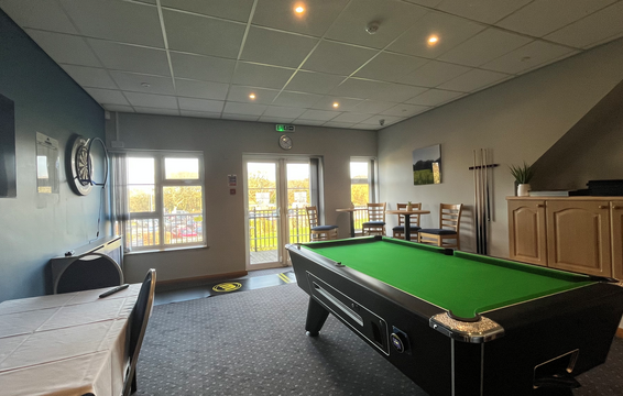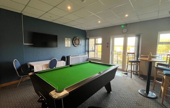 We are proud to present our recently upgraded games room which includes a 7ft Omega Professional Slate bed pool table and Blade 6 dartboard and Sky Sports shown on a 50" Smart TV.